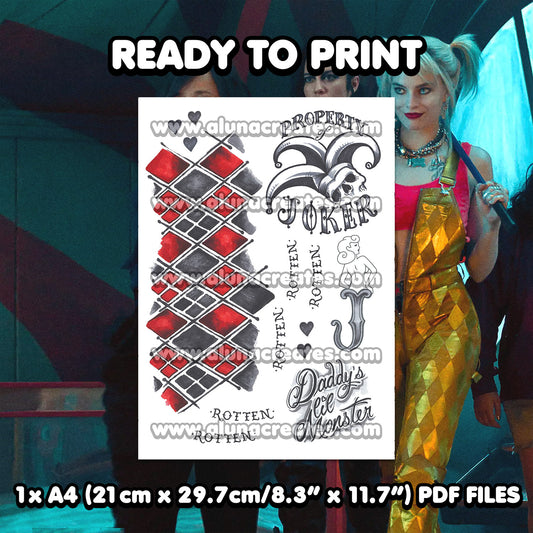 Harley Quinn - Birds of Prey | READY TO PRINT .PDF TATTOOS | FULL SET - AlunaCreates
