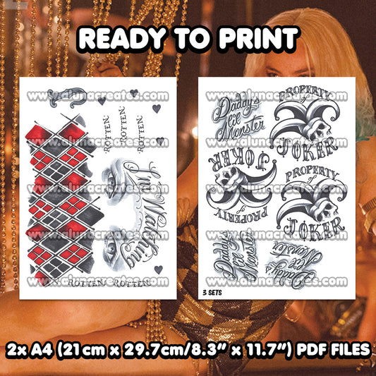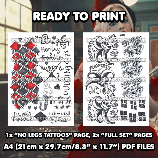 Harley Quinn (Classic) - Suicide Squad | READY TO PRINT .PDF TATTOOS | FULL SET - AlunaCreates