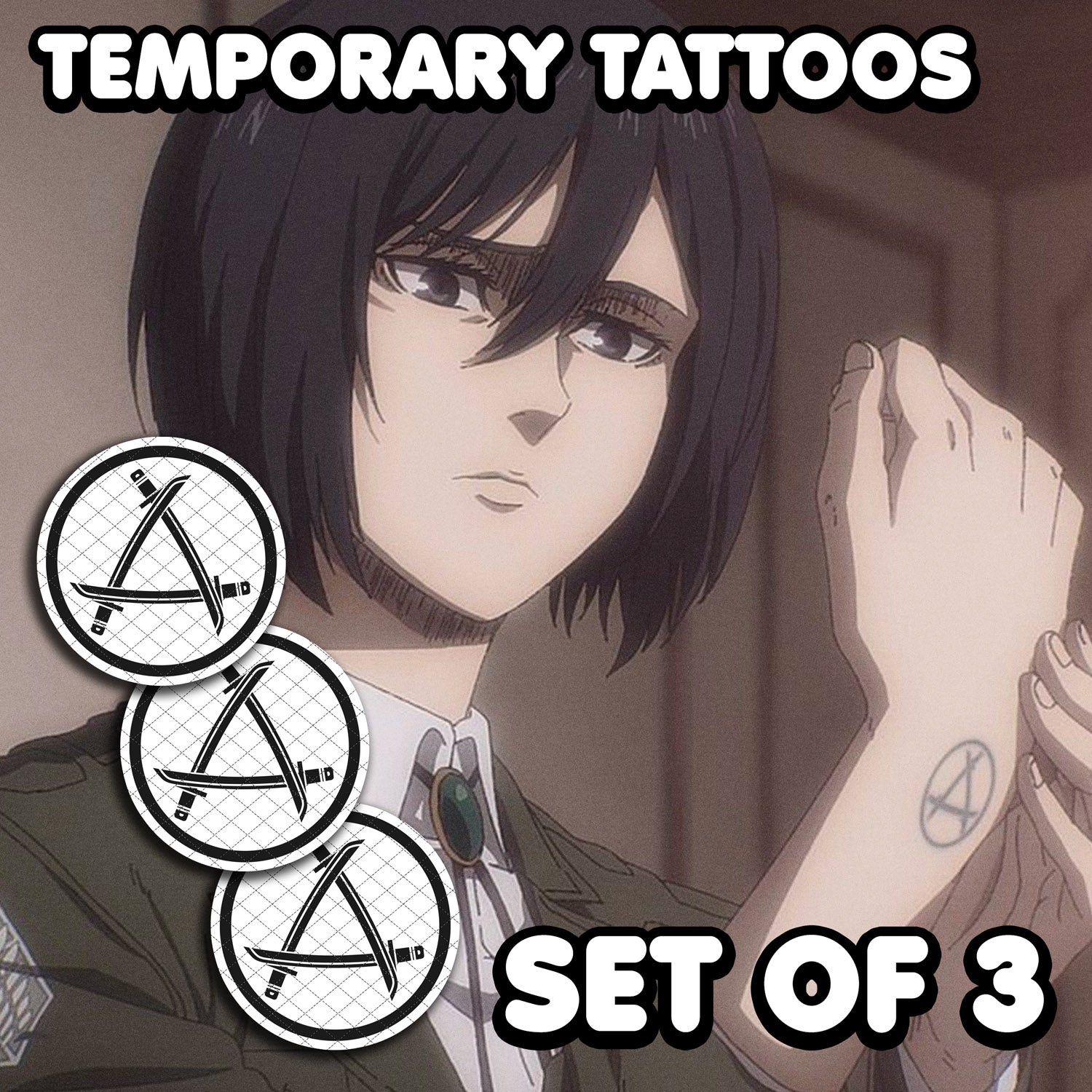 Mikasa Ackerman - Attack on Titan | Temporary Tattoos | SET OF 3 - AlunaCreates