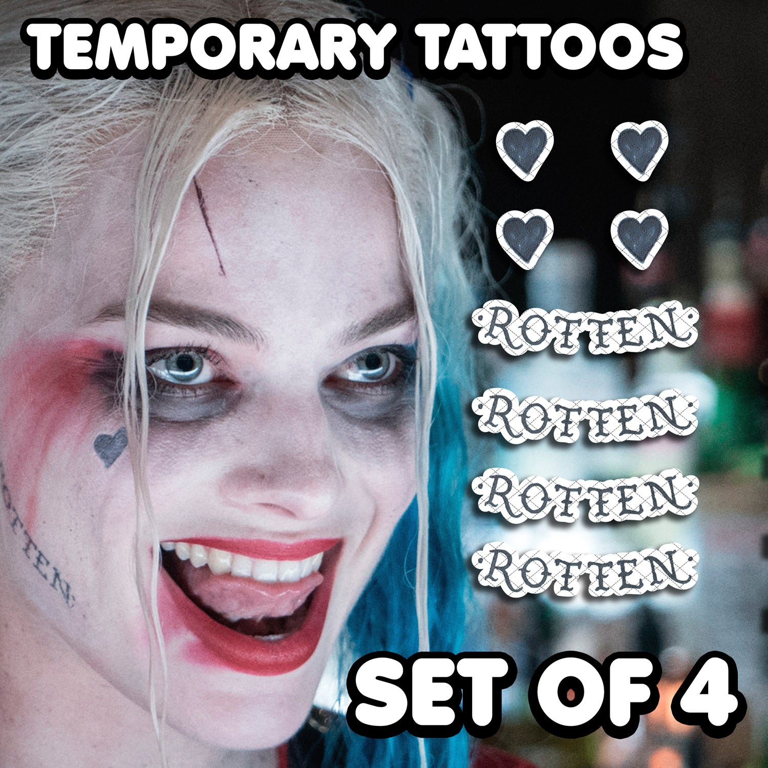 Temporary Tattoos inspired by Harley Quinn from Suicide Squad. As accurate with the movie as possible.