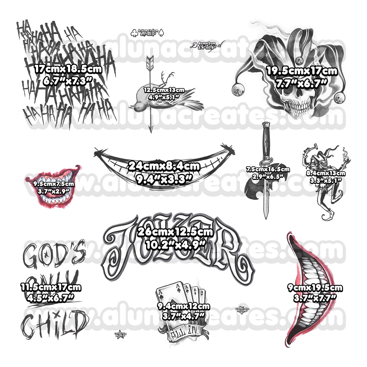 Joker | tymczasowe tatuaże | PEŁNY ZESTAW - AlunaCreates