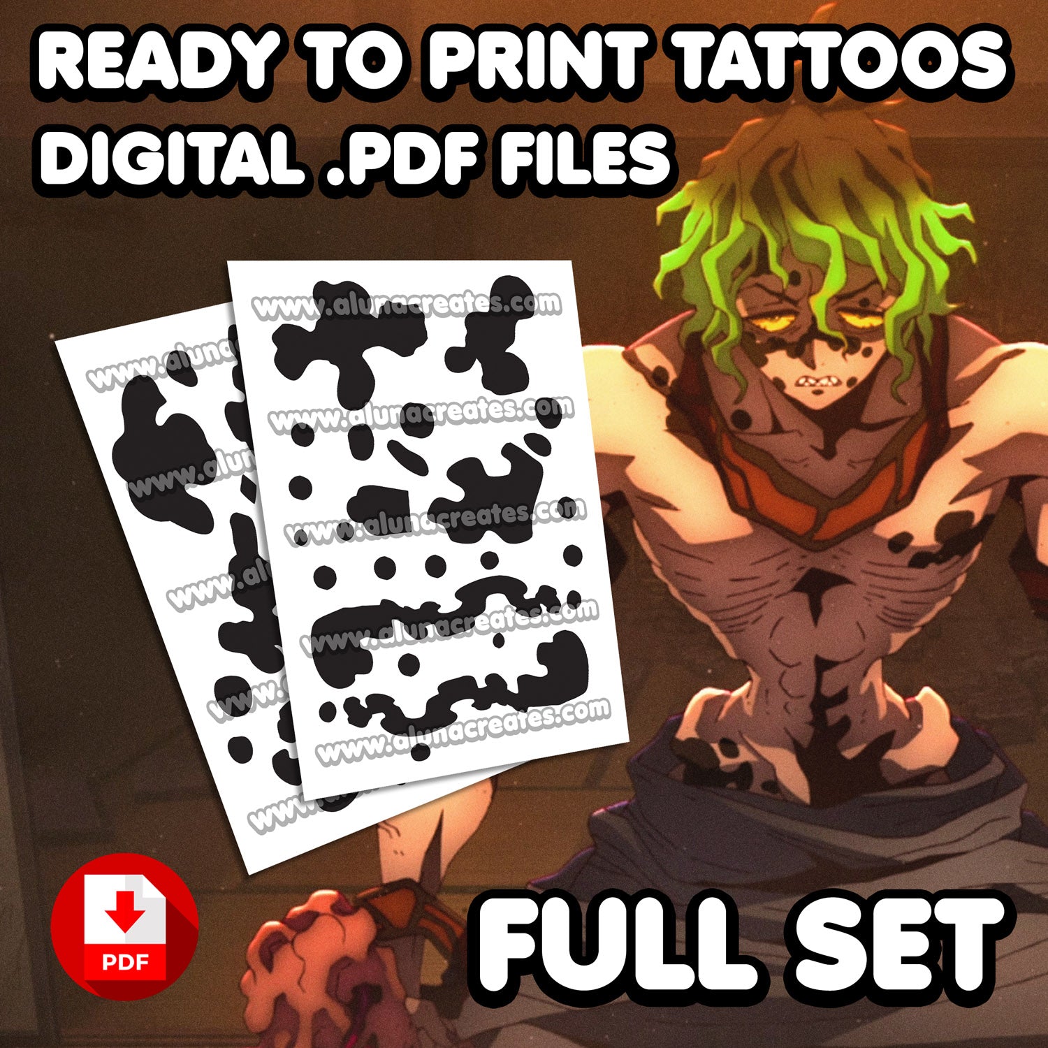 Gyutaro - Demon Slayer | READY TO PRINT .PDF TATTOOS | FULL SET - AlunaCreates