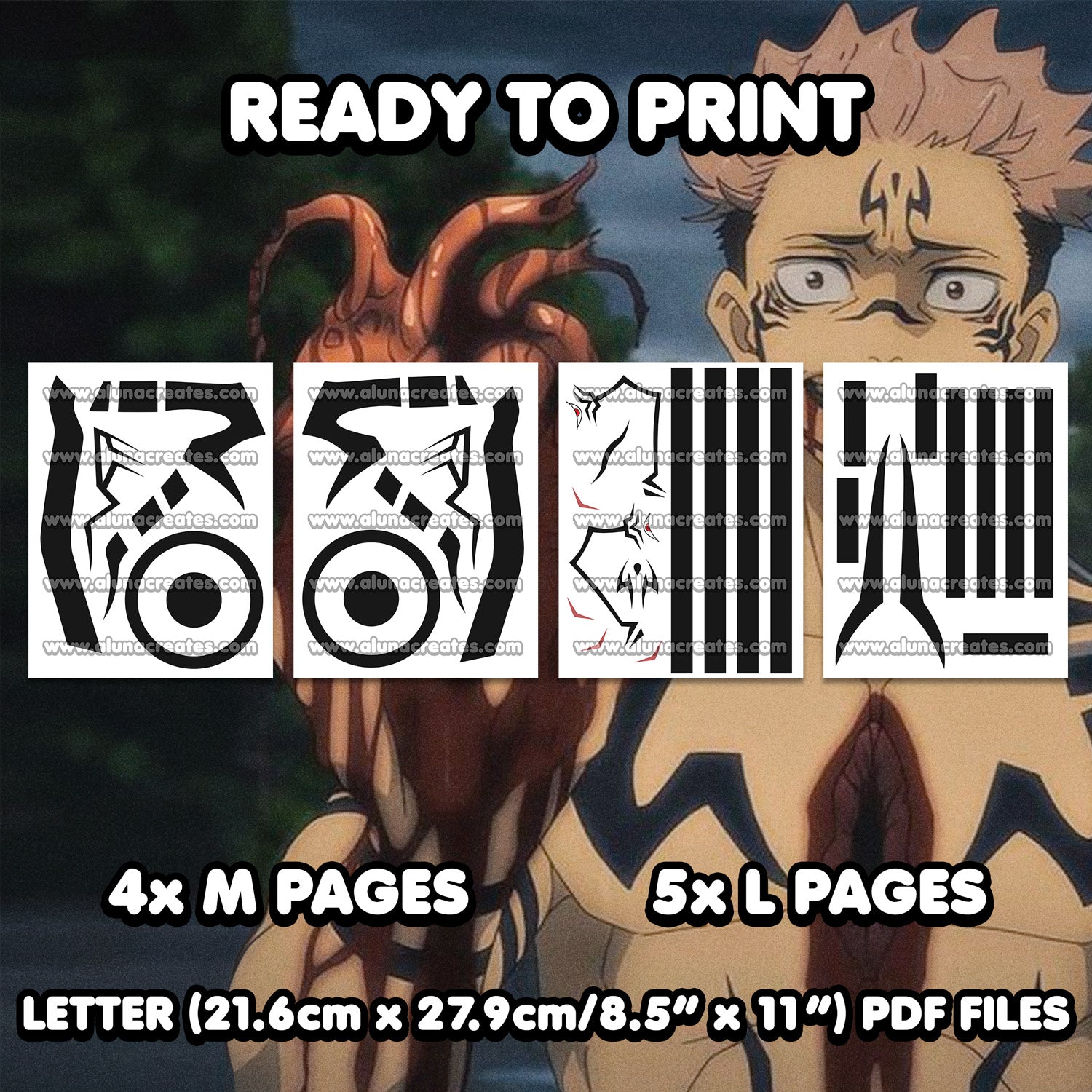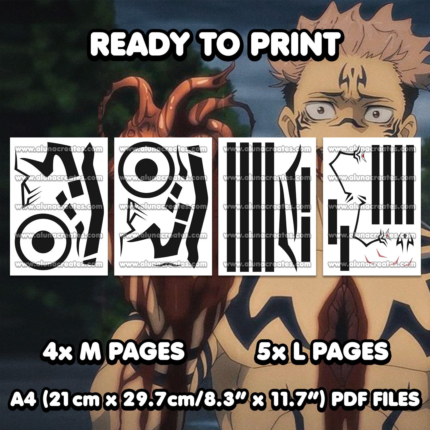 Ryomen Sukuna - Jujutsu Kaisen | READY TO PRINT .PDF TATTOOS | FULL SET - AlunaCreates