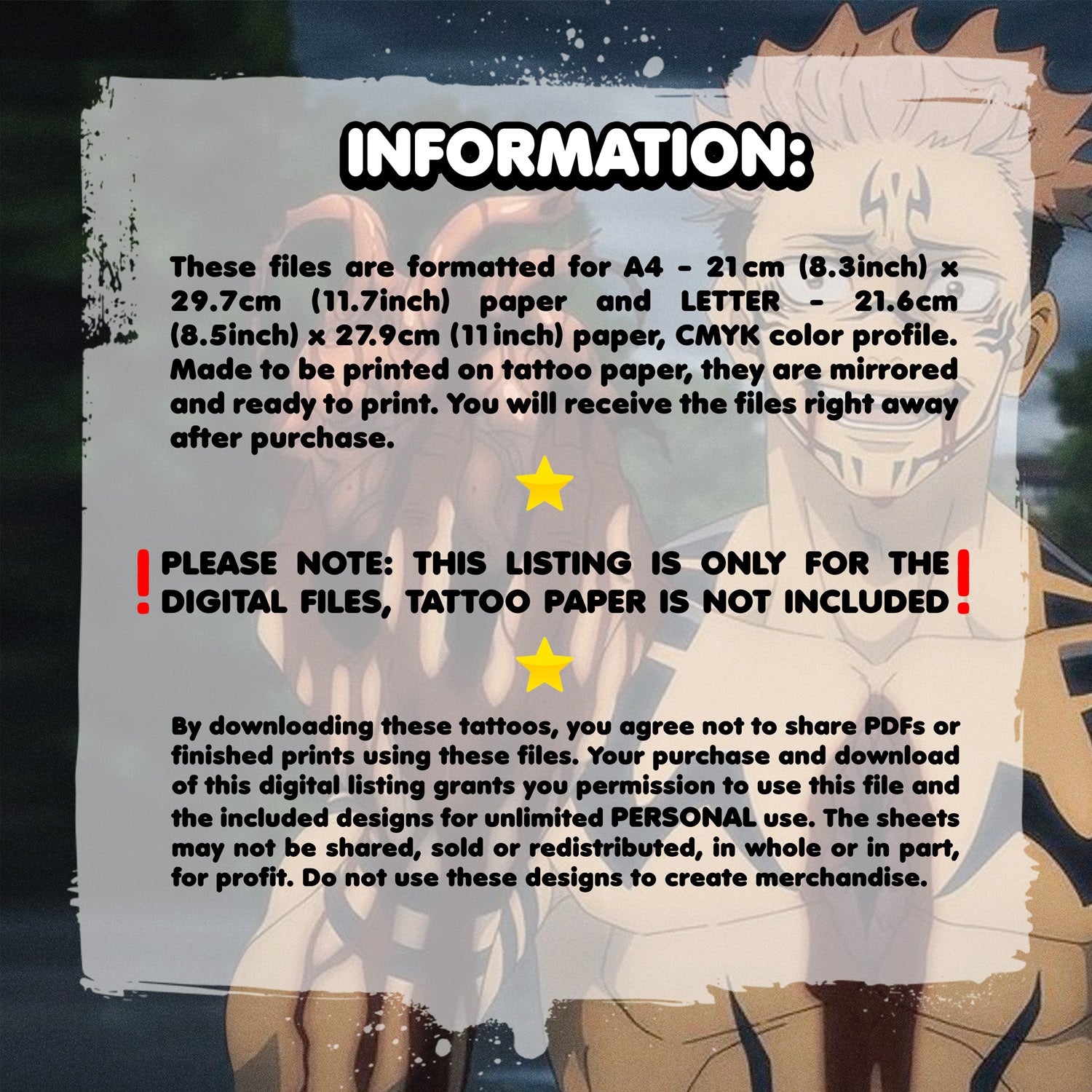 Tattoo set comes with two sets of casual Yuji Itadori face tattoos as a gift!