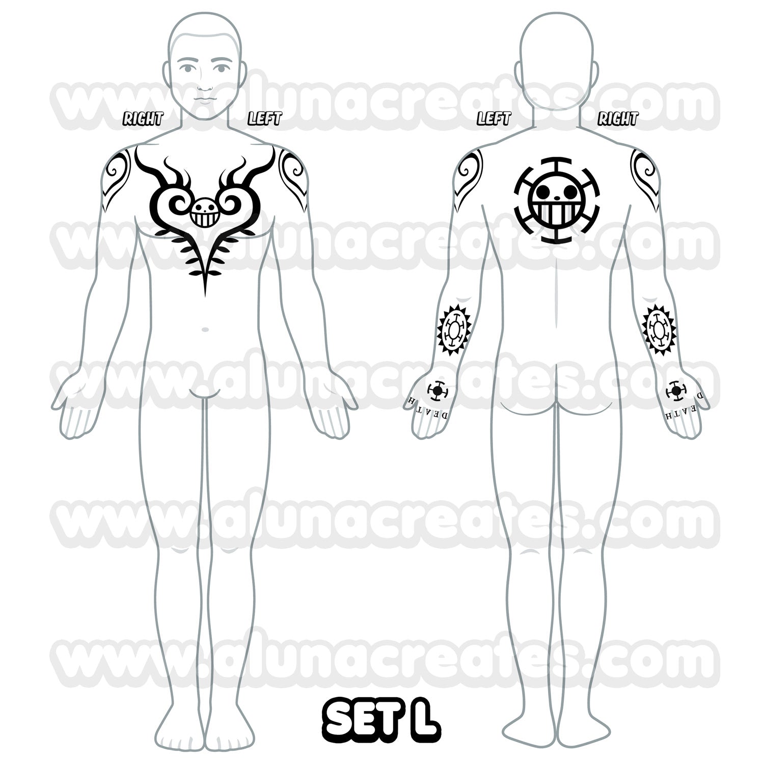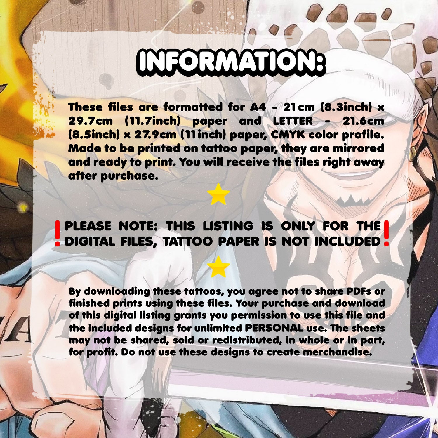 Trafalgar D. Water Law - One Piece | READY TO PRINT .PDF TATTOOS | FULL SET - AlunaCreates